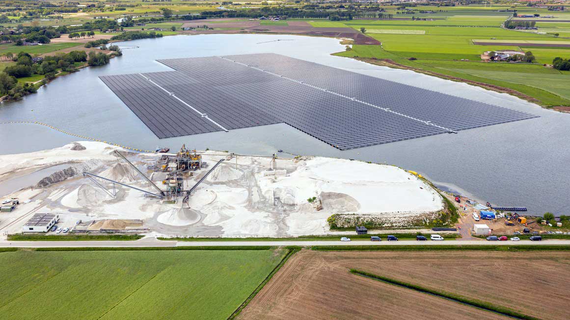 ‘Bij Zwolle hebben we samen met Groenleven, een zonnepark ter grootte van veertig voetbal-velden aangelegd, op het water. Groenleven deed de investering en de exploitatie, Dekker leverde de ruimte en bepaalde het kader. Daarbij draaide het niet alleen om het opwekken van zoveel mogelijk zonne-energie, maar is er ook ruimte gemaakt voor natuuroevers langs de randen van het meer.’